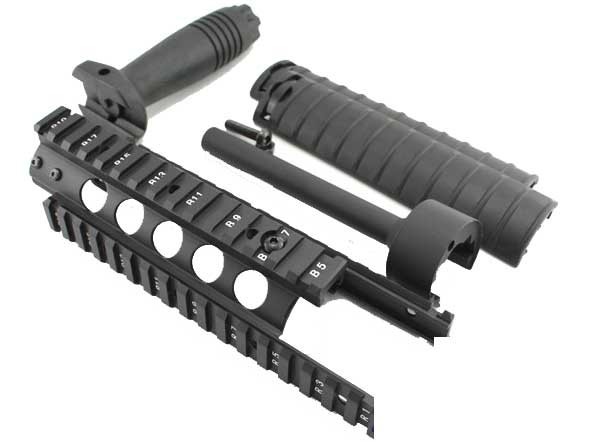 Taktické kovové předpažbí s RIS kolejnicemi pro MP5. RIS kolejnice umožňuje montáž taktických doplňků, jako je např. laserový zaměřovač, svítilna, ….apod. Krytky RIS lišty jsou zhotoveny z ABS plastu. Součástí balení je i vertikální RIS rukojeť. Předpažbí lehce zvětšuje prostor na akumulátor.